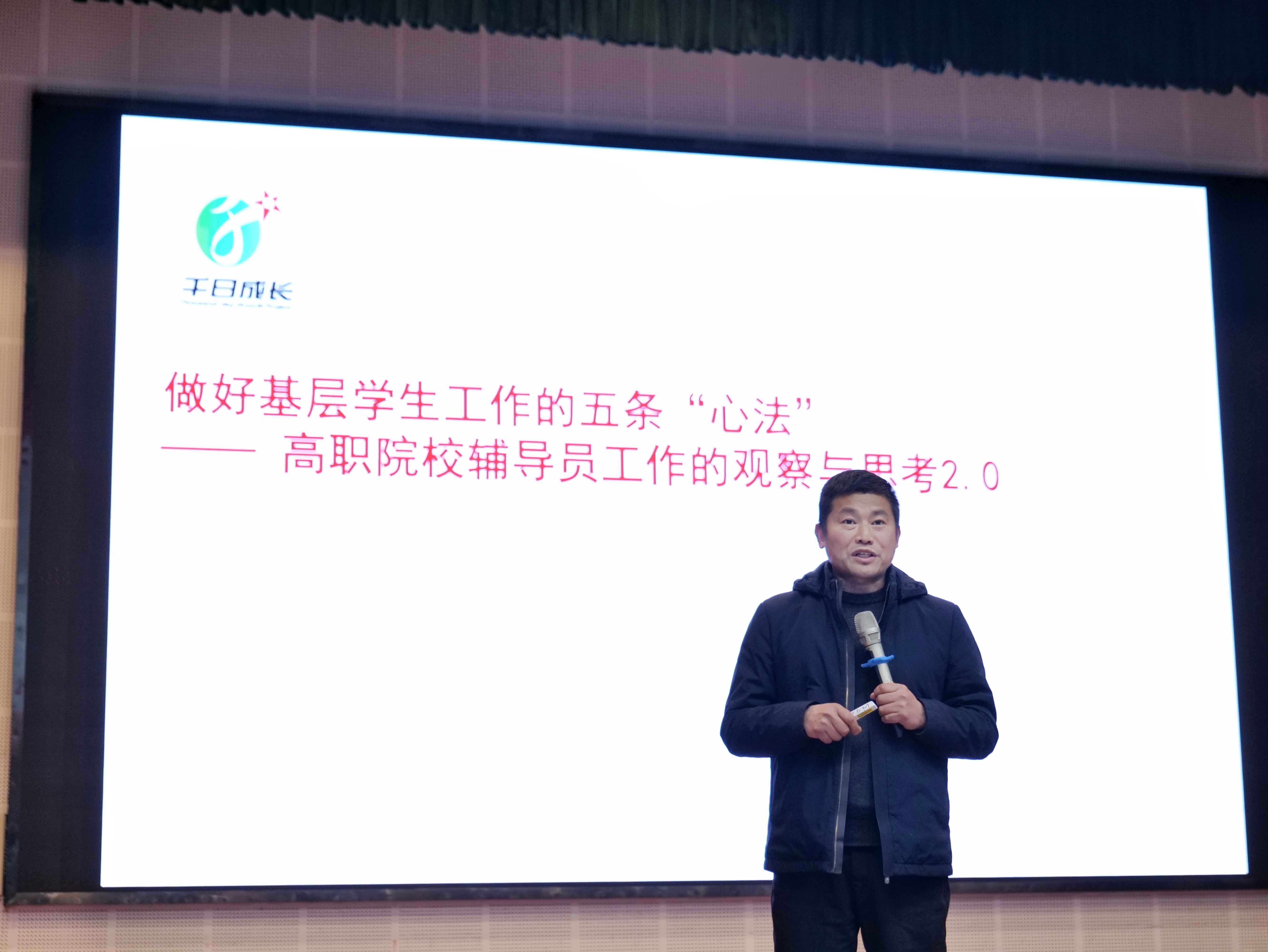 2月11日,浙江金融职业学院学生工作部部长、高职院校网络思政名师工作室主持人王懂礼教授应邀来校,作题为《做好基层学生工作的五条“心法”》的专题培训报告,会议由学院纪委书记闫博主持。党委书记郝荣平、党委副书记张华伟等学院领导出席了报告会,学校中层干部、辅导员、学生工作者等五百余人参加,现场反响热烈。