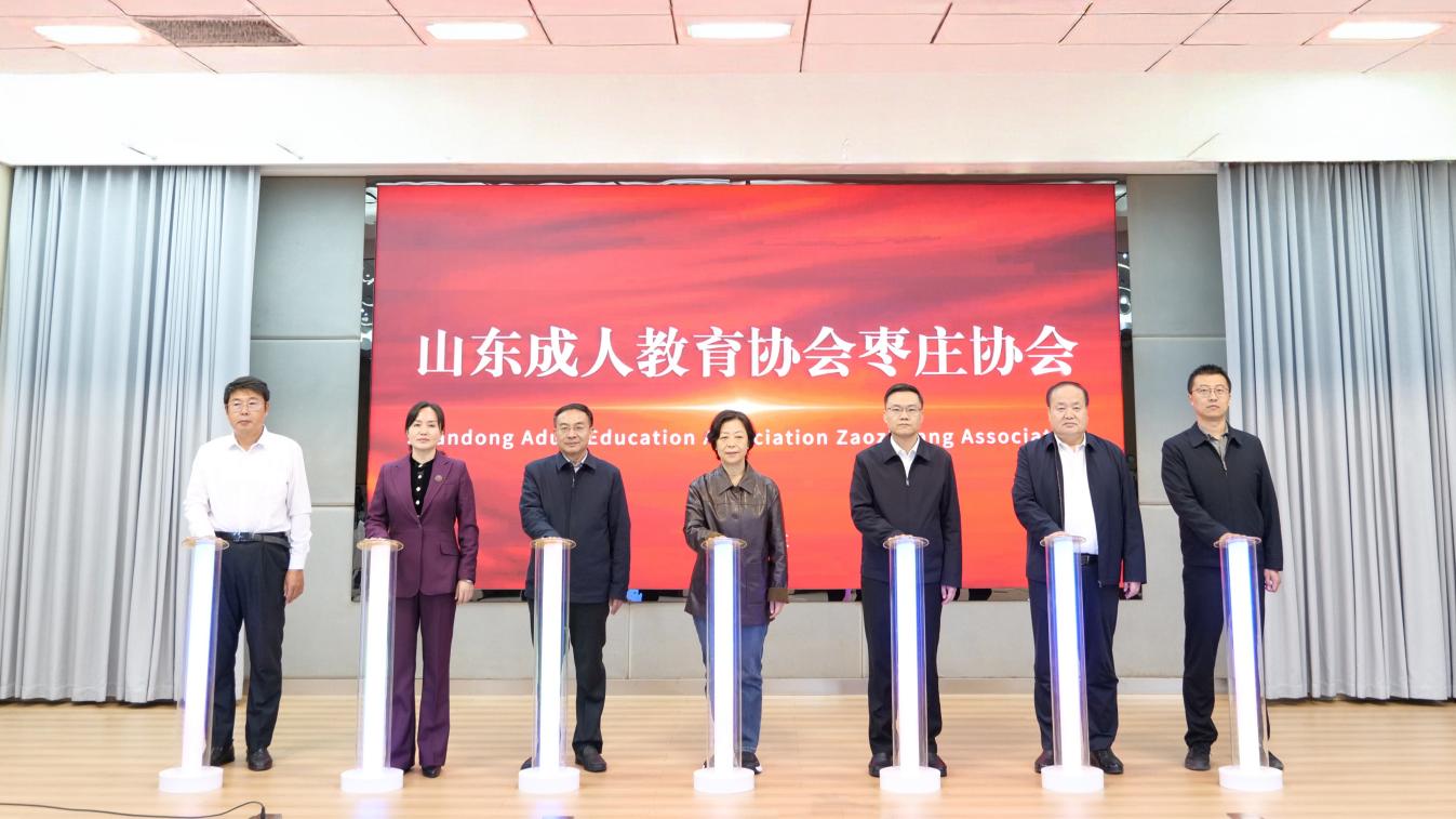 仪式上,领导们共同按下启动柱,标志着山东成人教育协会枣庄协会正式成立。