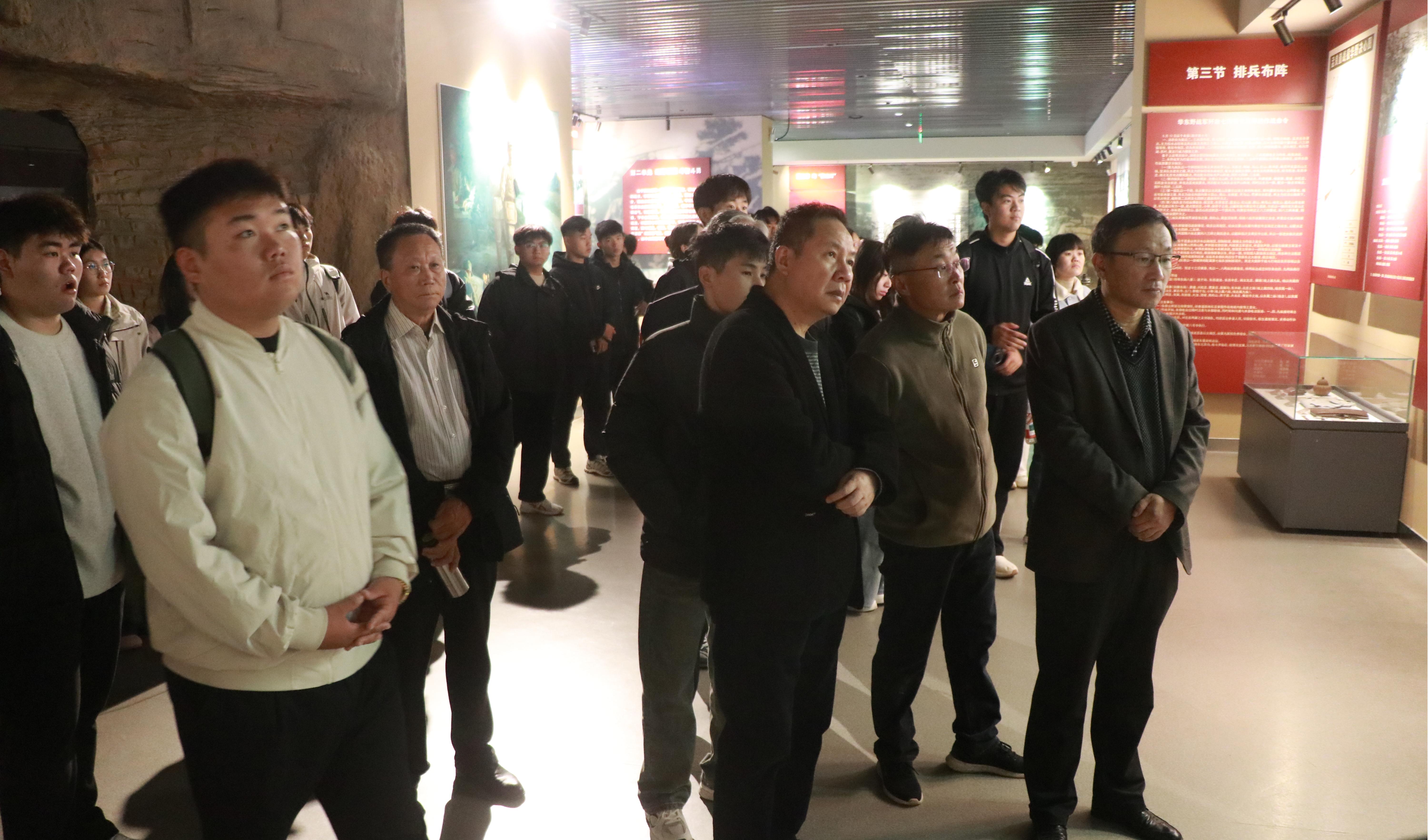 在孟良崮战役纪念馆,师生们怀着崇敬的心情,依次参观了各个展厅。珍贵的历史照片、详实的文献资料、逼真的场景复原以及锈迹斑斑的武器装备,生动再现了1947年孟良崮战役中,华东野战军在陈毅、粟裕等将领指挥下,奋勇歼敌、扭转华东战局的英雄壮举,让在场师生深刻感受到革命先烈的无畏牺牲精神与沂蒙军民“水乳交融、生死与共”的深厚情谊。