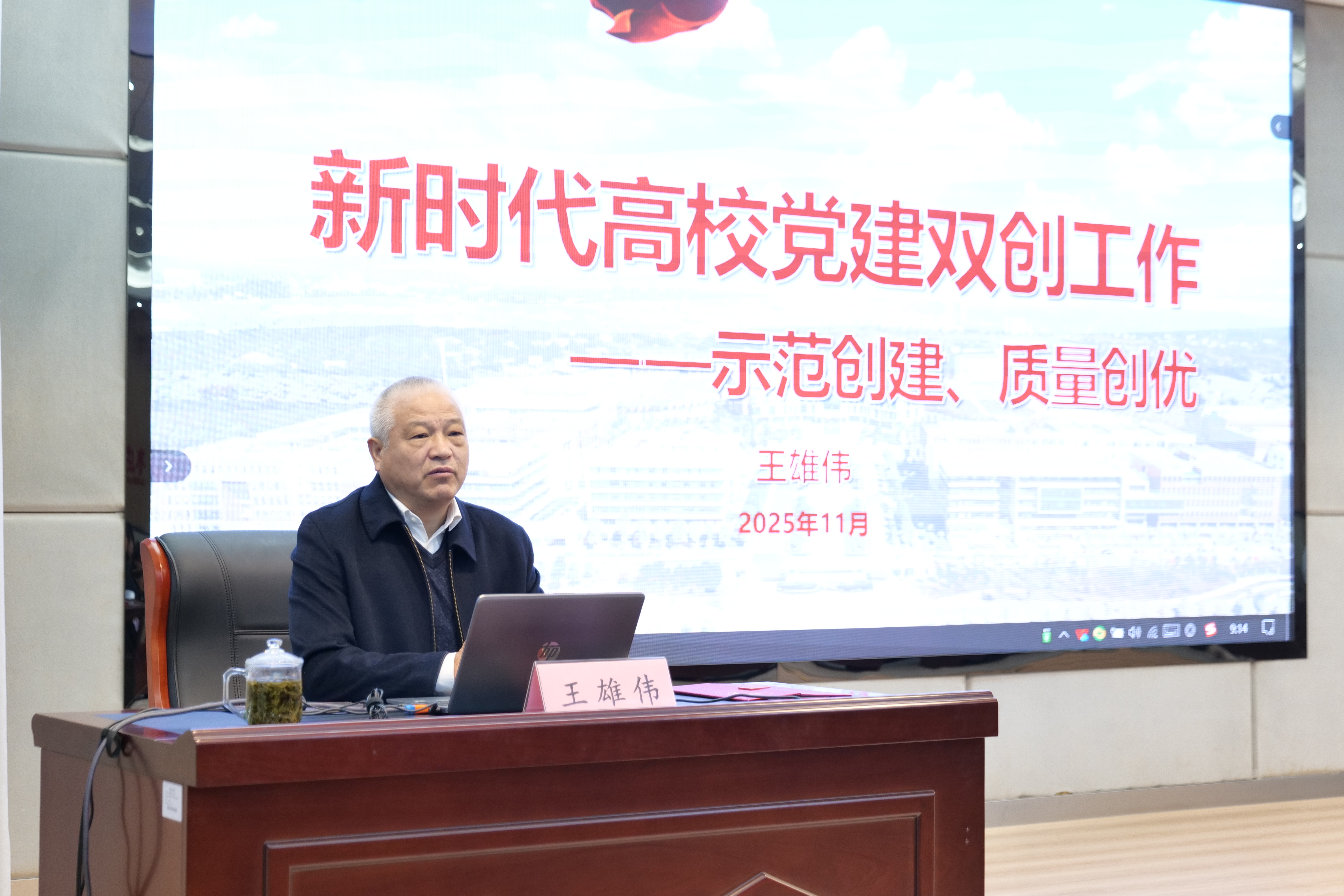 王雄伟以《新时代高校党建双创工作——示范创建、质量创优》为题,从“全国党建工作示范高校”申报立项、培育创建;“全国党建工作标杆院系”申报立项、培育创建;“全国党建工作样板支部”申报立项、培育创建;“高校党建的基本范式”等四个方面,作了一场站位高远、内涵丰富、指导性强的精彩报告。报告既有政策解读,也有典型案例,为学院党建工作注入了新的思路与动力。