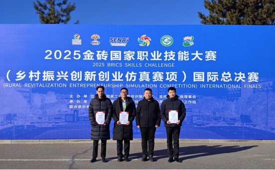 近日,2025年金砖国家职业技能大赛“乡村振兴创新创业仿真”赛项国际总决赛在鄂尔多斯生态环境职业学院成功举办。由我校新能源与汽车工程系教师李明聪、经济与信息技术系教师李琦、新能源与汽车工程系学生陆逸豪组成的参赛团队,凭借扎实的专业功底与出色的现场表现,荣获总决赛一等奖。