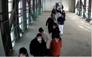 第一现场应急疏散组按照预定方案,组织13至15层人员经15层连廊向图书信息楼南楼疏散,3至12层人员沿东西两侧步梯低姿前行、湿毛巾捂鼻有序撤离,严格遵循“学生先撤、教师后撤”原则,关闭电源并沿途引导,确保疏散通道畅通。