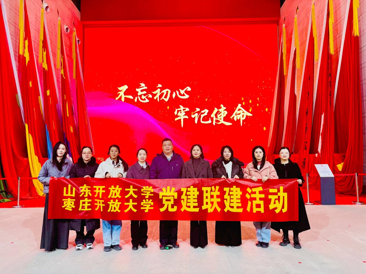 近日,山东开放大学赴枣庄开放大学联合开展“红色研学打头阵、文化浸润强根基、德廉淬炼守初心”主题党建联建活动。山东开放大学党委委员、宣传部部长刘忠强带队,枣庄职业学院创新创业培训学院党支部书记、枣庄开放大学负责人赵静及两校10余名党员干部齐聚枣城,通过沉浸式参观、互动式交流、深层次研讨,共话党建实践、共促经验互鉴。