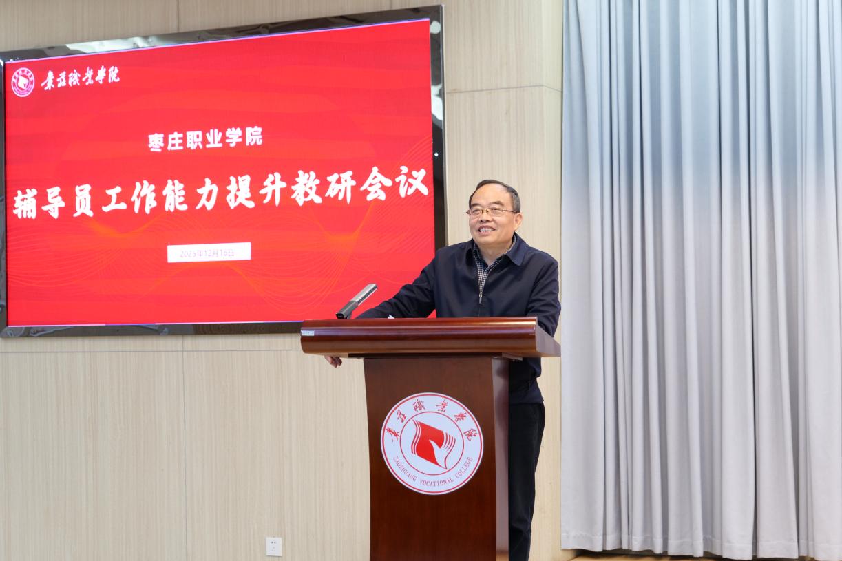 12月16日,枣庄职业学院辅导员工作能力提升教研会议在学术报告厅召开。学院党委书记郝荣平出席会议并讲话。会议由学院党委委员、副院长王念主持,各系(院)党总支书记、全体专职辅导员,及兼职辅导员代表参加会议。