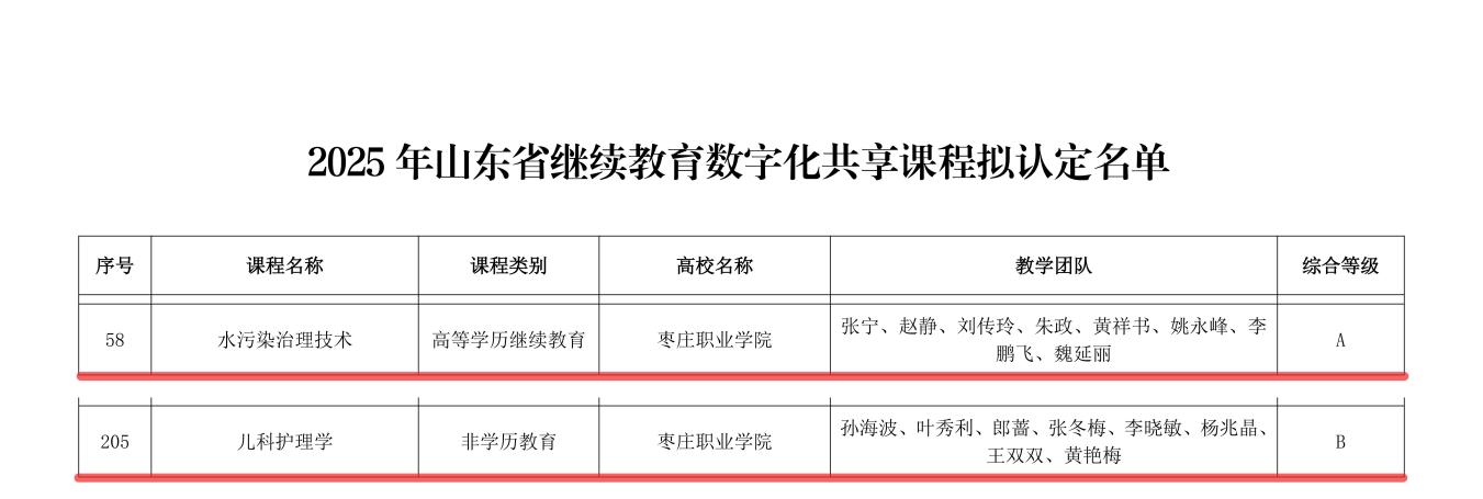 此次2门优质课程的首次入选,标志着我校职继协同发展模式成效显著,继续教育课程建设质量实现重大跨越,办学水平与教学创新能力获得省级权威认可,也为我校在继续教育领域进一步深耕优质资源、拓展服务维度、发挥示范引领作用奠定了坚实基础。下一步,枣庄开放大学将以此为契机,持续深化继续教育课程体系改革,聚焦优质课程资源建设,不断提升继续教育教学质量与服务水平,为赋能区域人才培养、推进终身教育体系构建贡献更大力量。(通讯员 杨宇 吕雁楠 吴超凯)