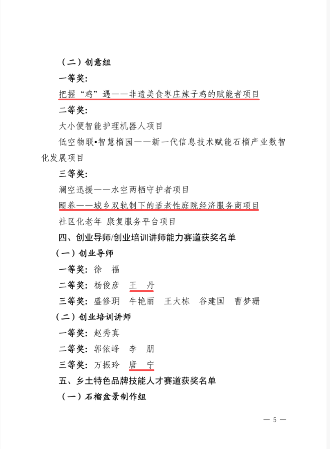 教师赛场同样捷报频传,尽显专业素养。创新创业培训学院教师王丹在创业导师赛道斩获二等奖,新能源与汽车工程系教师唐宁在创业培训讲师赛道中获得三等奖,充分展现出我校“双创”教师队伍过硬的专业能力与育人水平。
