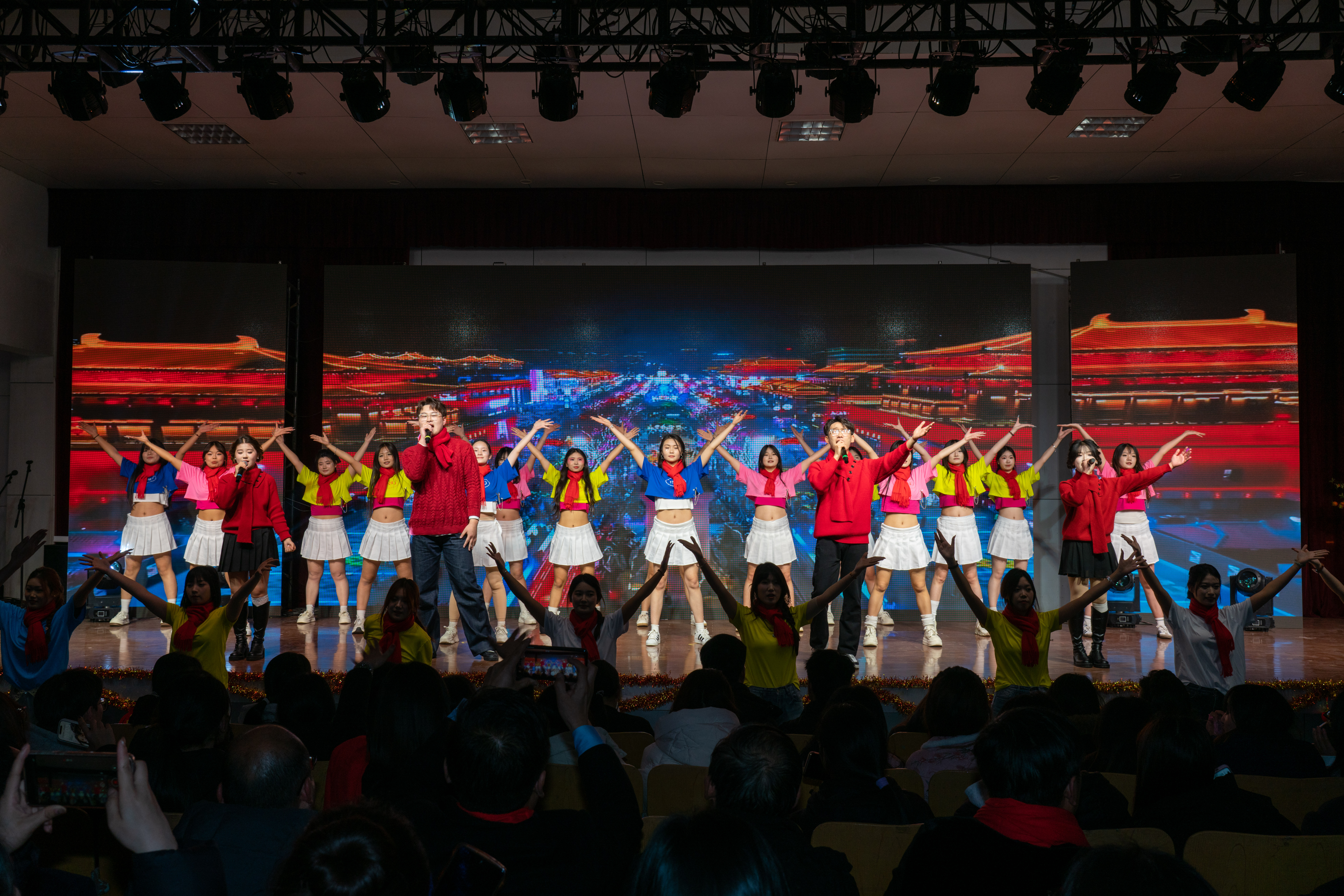 晚会在热烈氛围中拉开帷幕。刘希震向全体师生致以新年祝福,回顾校区年度发展成果,鼓励大家新的一年凝心聚力、奋勇争先,在学院沃土上续写辉煌。真挚话语赢得师生阵阵掌声。古城校区党总支书记高度赞扬晚会筹办师生的辛勤付出,并为全体师生送上新年祝福。