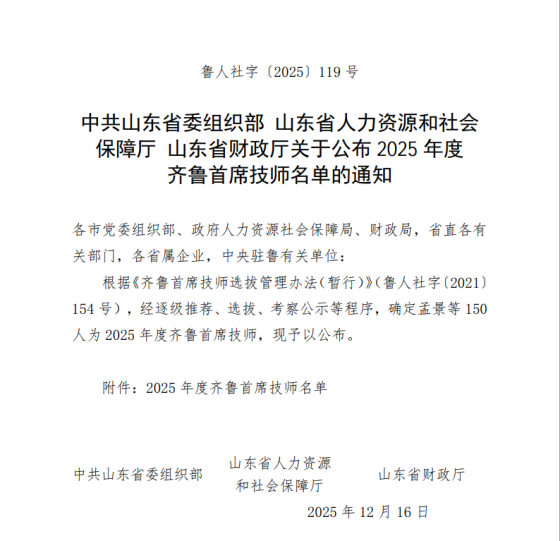 近日,山东省委组织部、省人力资源和社会保障厅、省财政厅联合印发《关于公布2025年度齐鲁首席技师名单的通知》,我校行业导师、枣庄润众汽车销售服务有限公司技术总监郑冲成功入选。