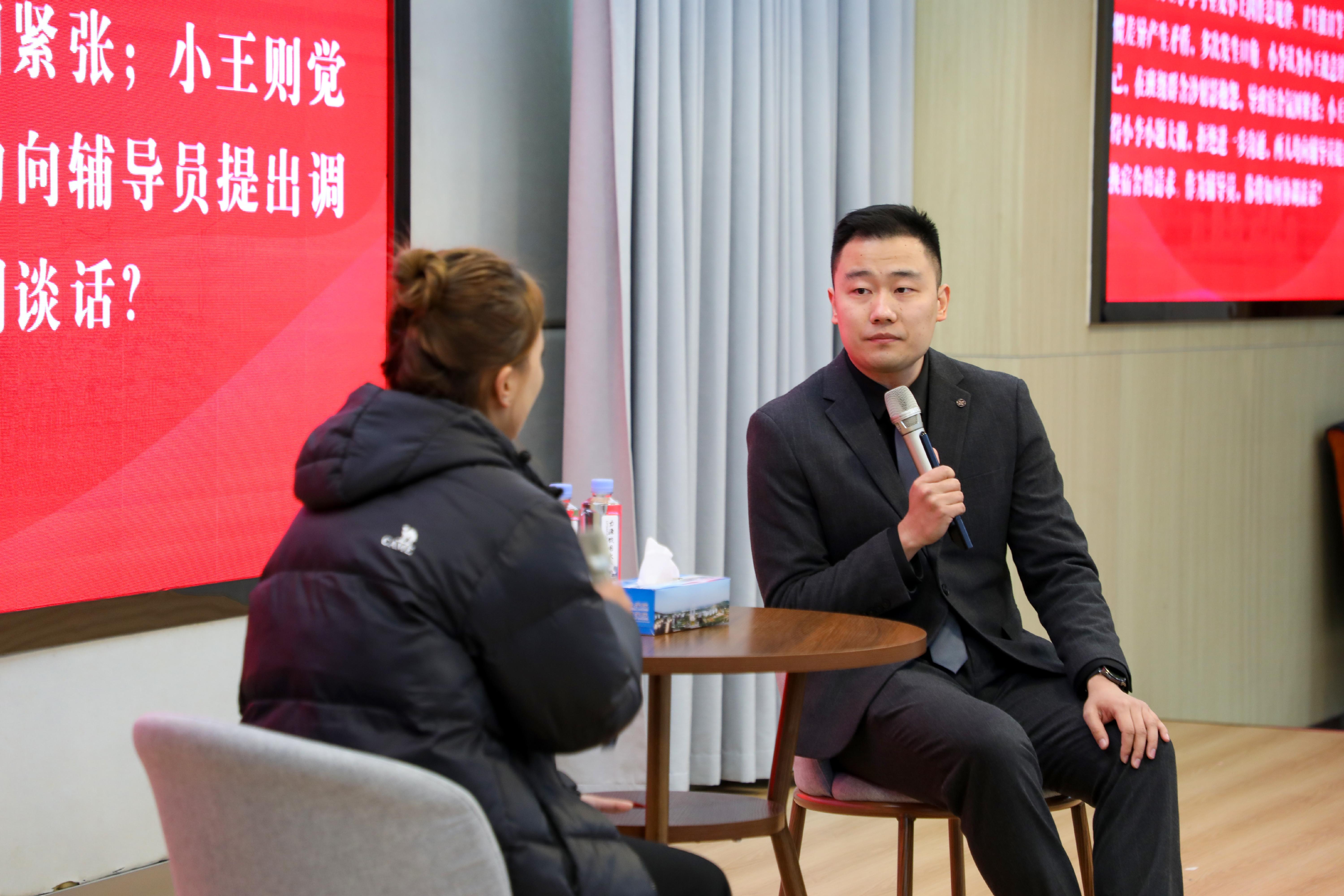 谈心谈话环节以情景模拟形式还原真实育人场景,涵盖寝室矛盾、学业焦虑、网络诈骗、择业迷茫、负面情绪困扰等不同类型。辅导员们摒弃说教式沟通,以真诚共情的态度倾听诉求,用专业精准地引导疏导困惑,结合学生成长规律提供个性化解决方案。每一场谈话都成为有温度、有深度、有力度的育人实践,生动诠释了辅导员作为学生“知心人、热心人、引路人”的育人使命与职责担当。