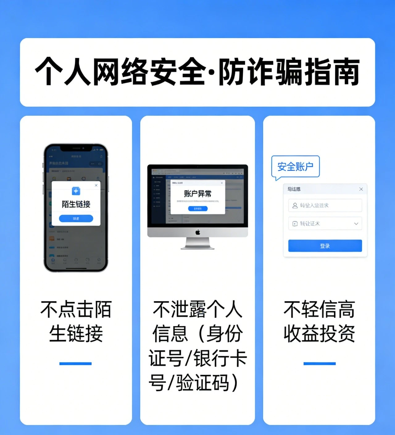 3.警惕各类诈骗,守住财产底线:返校途中及报到前后,是电信网络诈骗的高发期,大家要时刻警惕“冒充老师收取学费”“返校机票/车票改签”“刷单返利”“网络借贷”等各类诈骗手段,凡是涉及转账、汇款、索要验证码的信息,务必多方核实,切勿轻信,遇可疑情况及时报警。