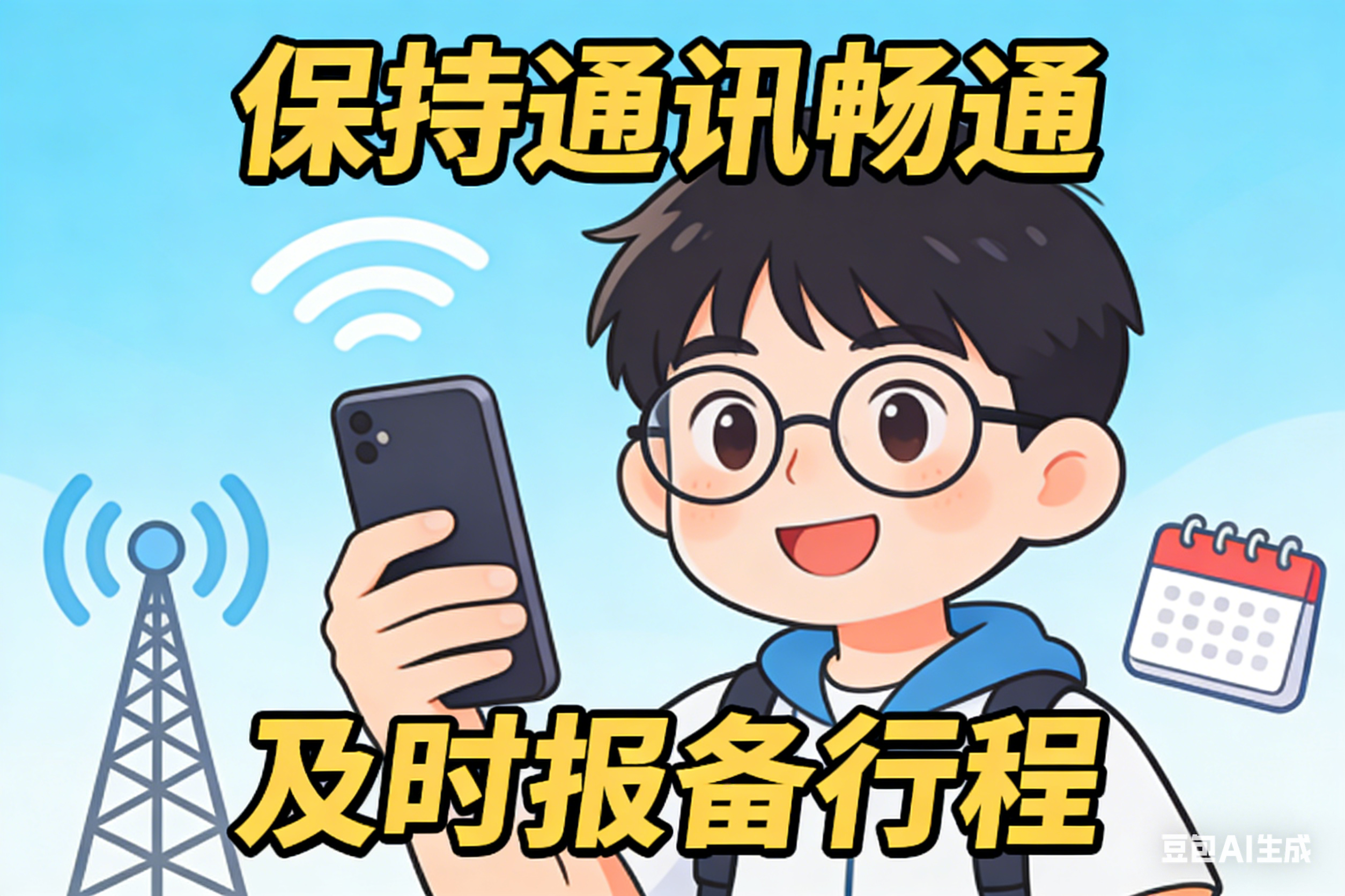 5.保持通讯畅通,及时报备行程:请大家全程保持手机电量充足、通讯畅通,主动向家人、辅导员报备返校行程、所乘交通工具、预计到校时间;若行程中出现车次延误、改道等突发情况,第一时间与辅导员沟通,让学校和家人知晓你的动态。