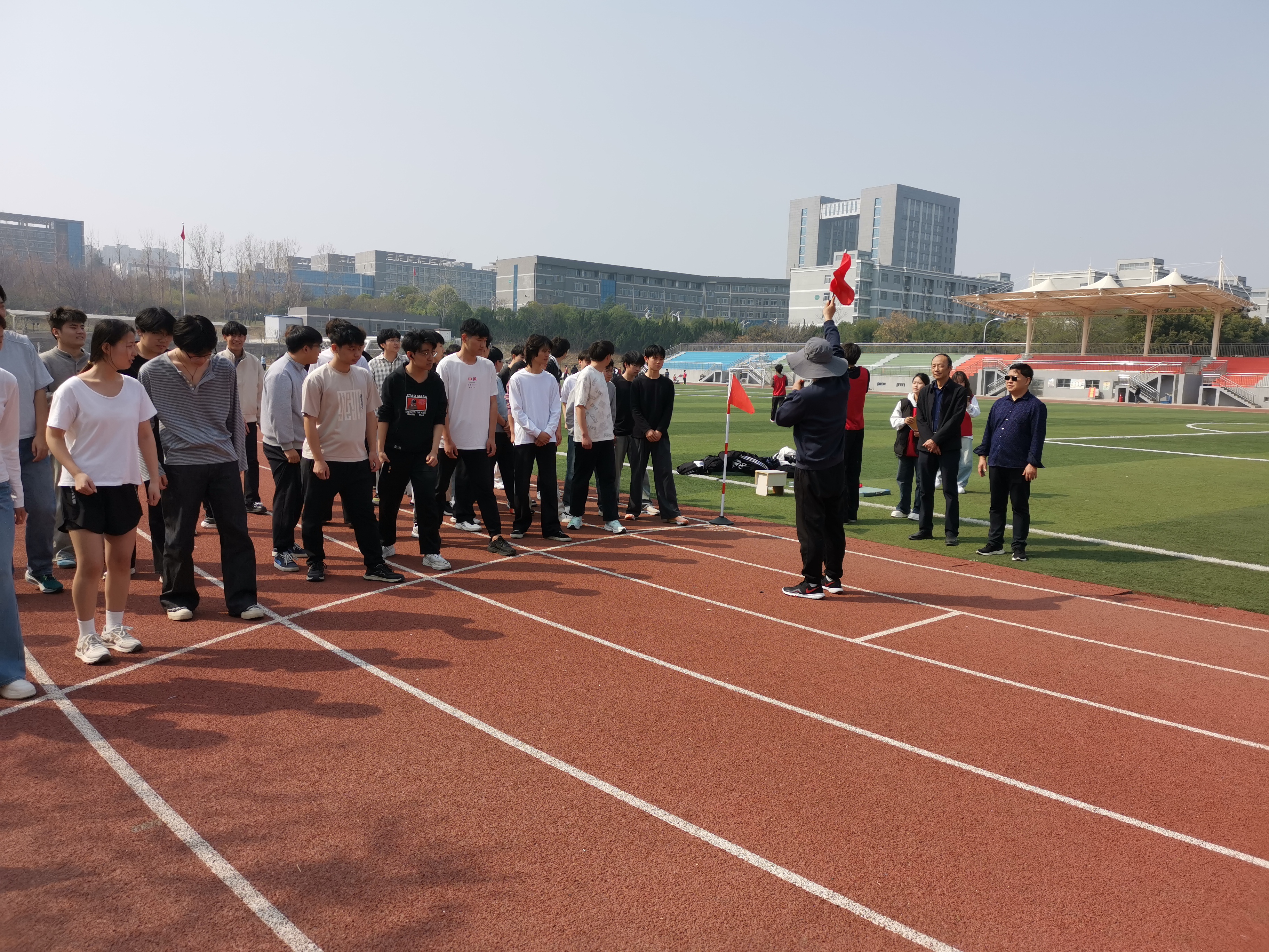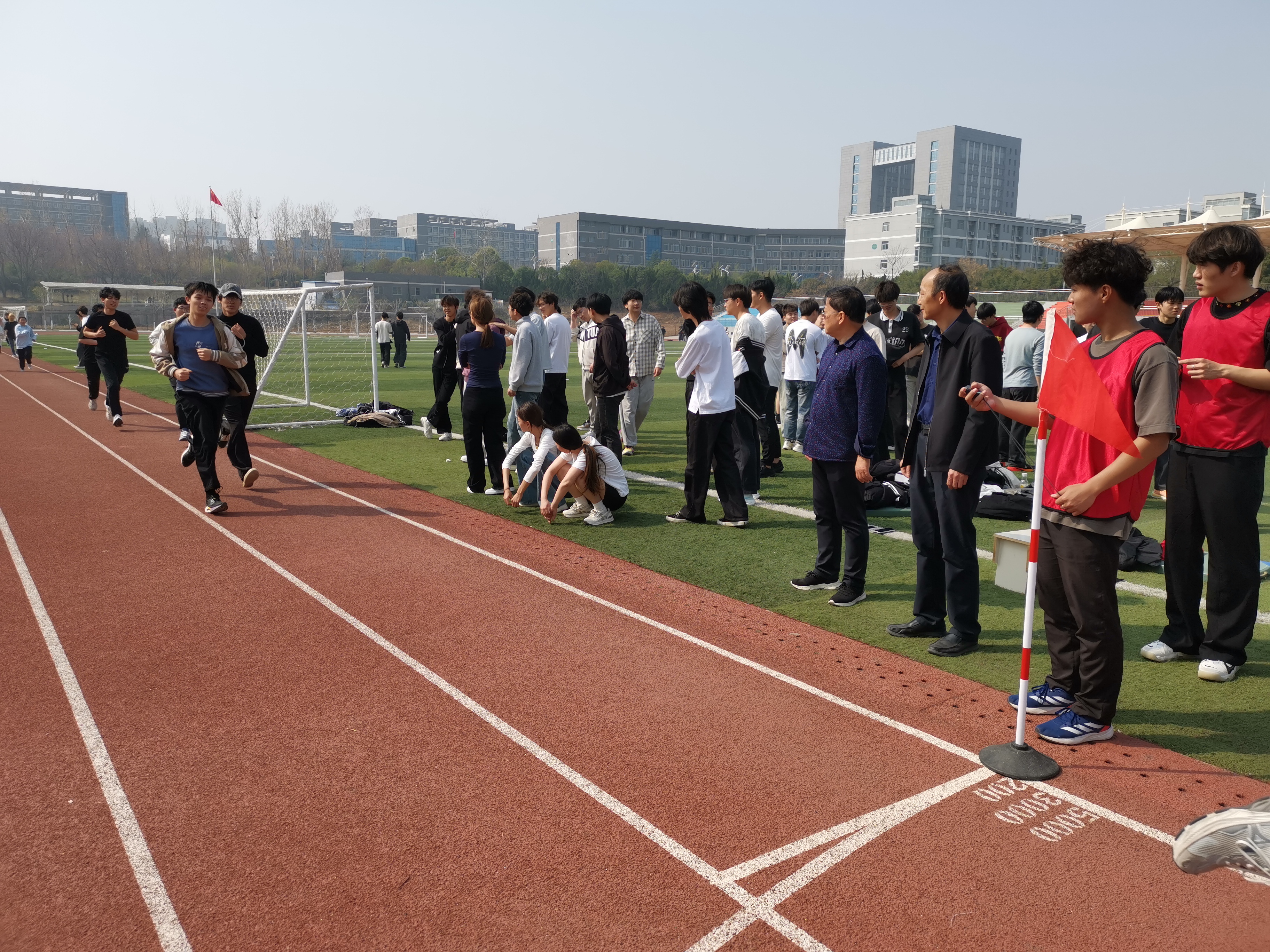 测试现场组织严密,各项流程规范有序。测试教师履职尽责,学生志愿者主动担当、协同配合,严格按照体测标准,有序开展身高体重、肺活量、坐位体前屈、50米跑、立定跳远、男子1000米/女子800米跑等多个项目的检测工作。测试过程中,同学们精神抖擞、斗志昂扬,自觉排队、积极参与,在运动中展现出枣职学子朝气蓬勃、奋勇拼搏的良好精神风貌。