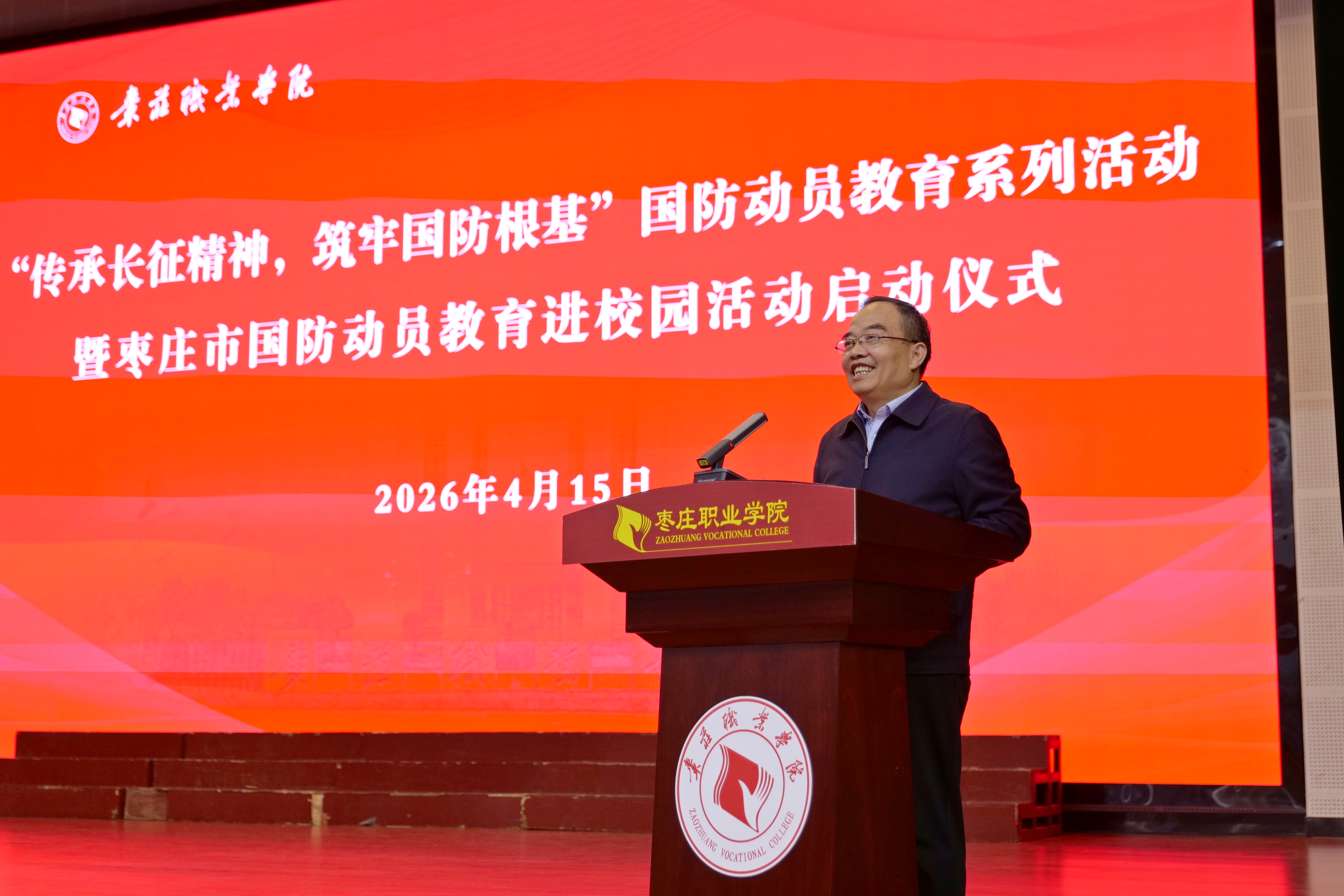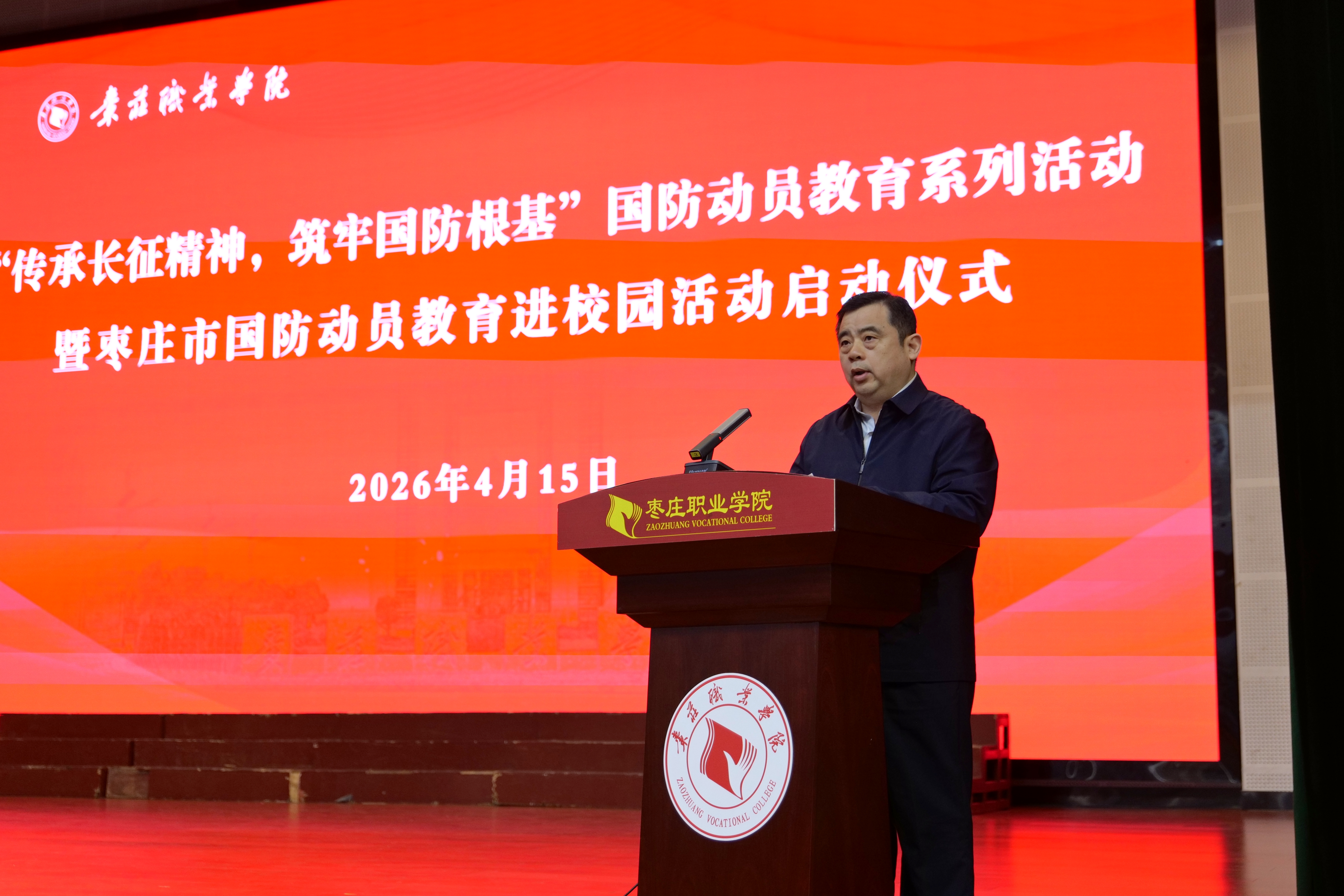 4月15日下午,学院举行“传承长征精神,筑牢国防根基”国防动员教育系列活动暨枣庄市国防动员教育进校园活动启动仪式。枣庄市国动办党组书记、常务副主任、市人防办主任高淦出席仪式,学院党委书记郝荣平主持仪式并讲话。市人防办原党组成员、副主任、二级调研员王继启,市国动办党组成员、副主任冯君昌和市国动办各处室负责同志,学院各系(院)负责人、学生管理负责同志、专职辅导员和学生代表等600余人参加仪式。