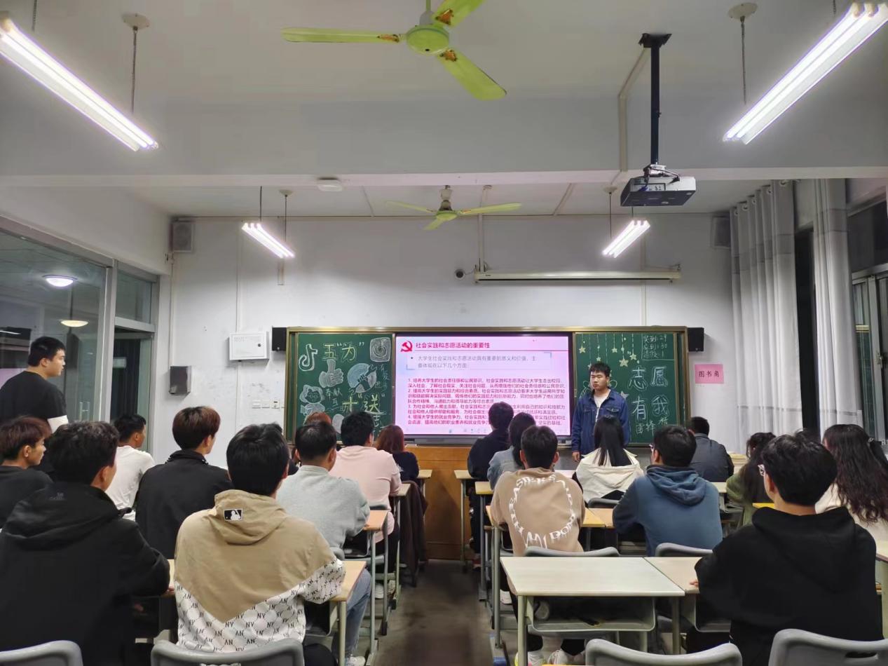 团课伊始,各班团支书通过讲解PPT的方式围绕什么是社会实践和志愿活动、社会实践和志愿活动的重要性、如何参加社会实践和志愿活动以及实践出真知,志愿显担当四个方面带领同学们了解社会实践与志愿活动的概念与相关知识。同学们通过阅读文字记述感悟了志愿活动与社会实践的重要意义,了解了社会实践与志愿活动的参与方法。团课强调了奉献不分大小和奉献永无止境,并告诫大家应利用正规平台和渠道寻找适合自己的活动,例如学校社团、社区服务中心、正规网络平台等。团课最后,各团支书向同学们提议,只有切身实地地去参加社会实践和志愿活动,才能真正地明白社会实践和志愿活动的意义和价值,应踊跃参与志愿活动,积极进行社会实践,争做新时代先进青年与新时代的“筑梦者”和“奋斗者”。