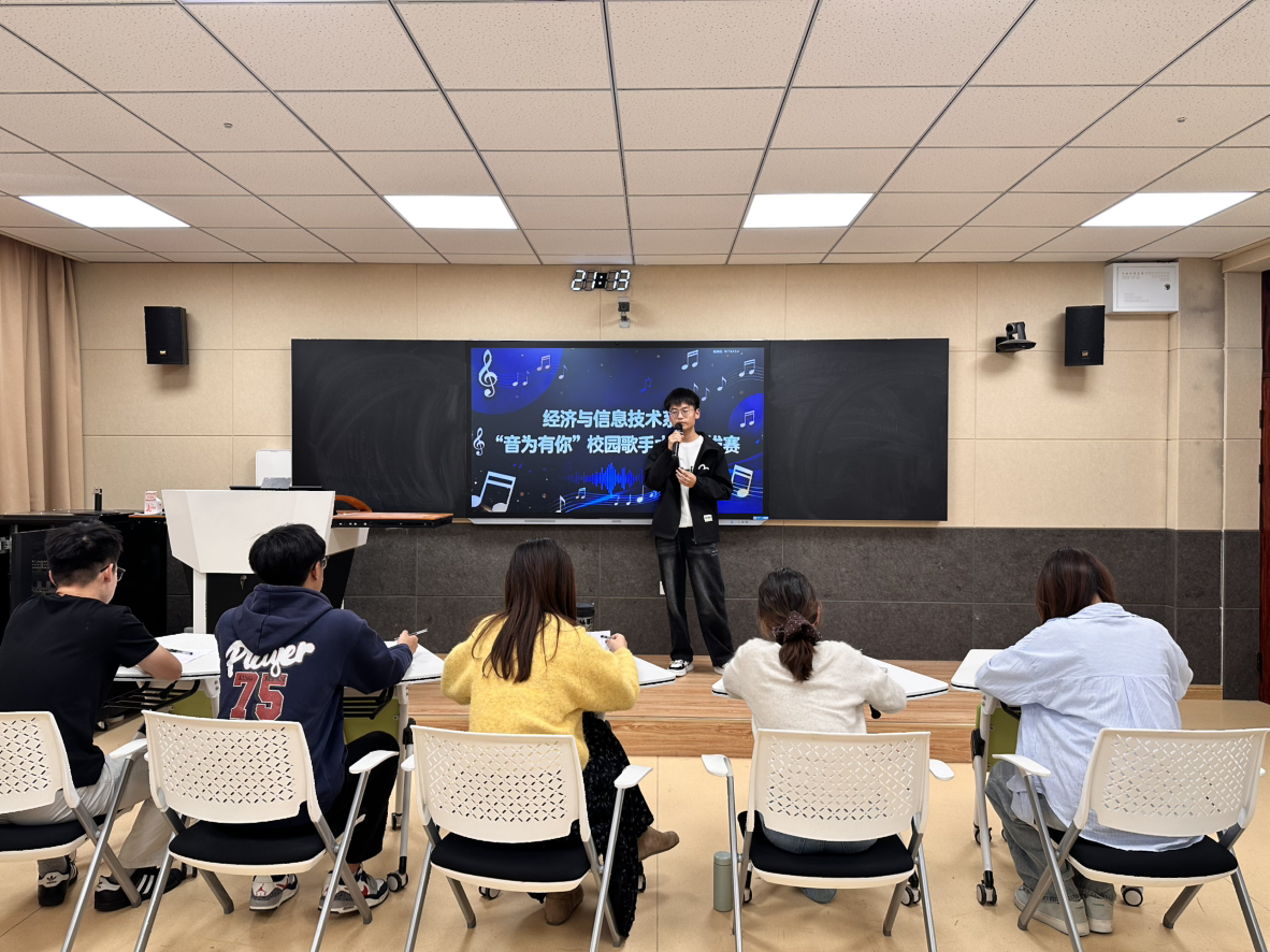 10月14日晚,教学楼A座四楼录播室灯光璀璨、旋律飞扬——经济与信息技术系“音为有你”校园歌手选拔赛在此震撼开唱。“好声音”同台飙歌,或低吟浅唱或高音炸裂,一场关于青春与梦想的视听盛宴火力全开!