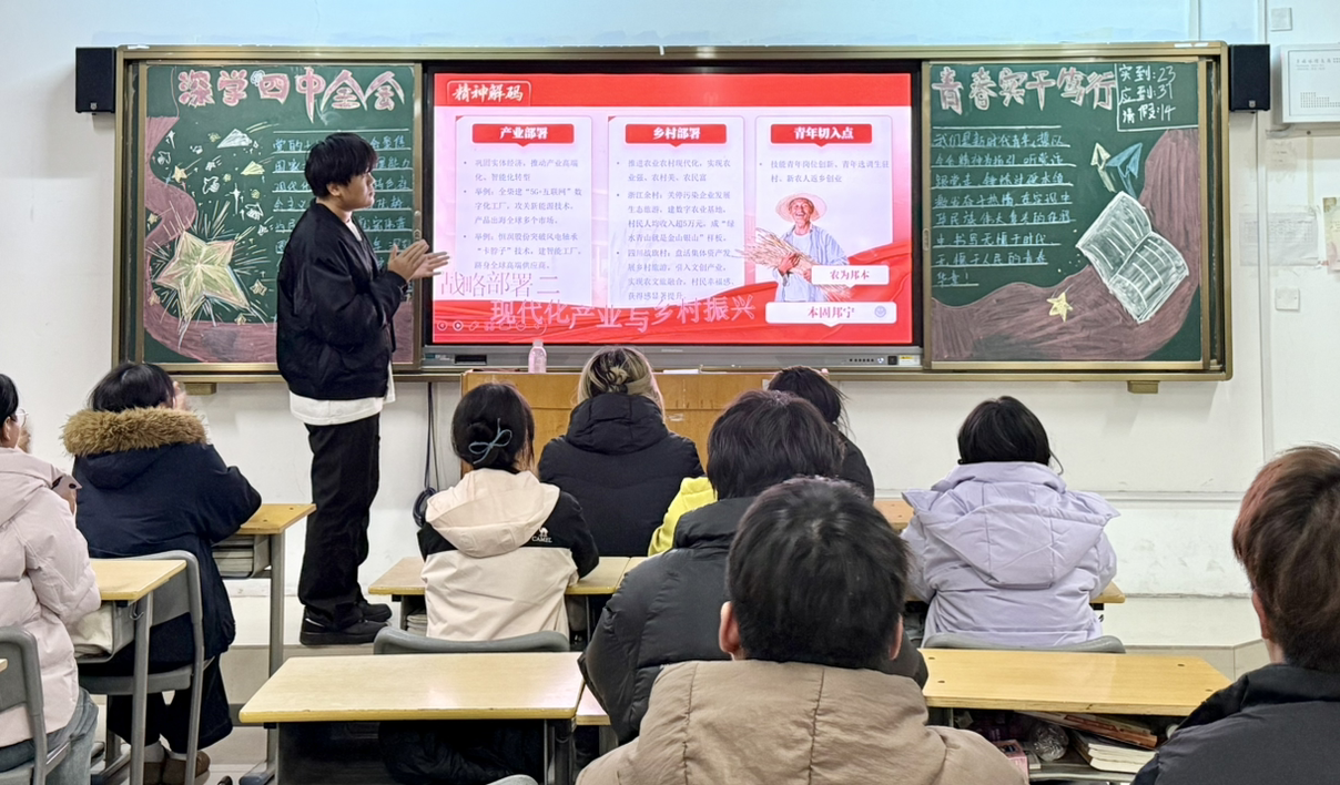 近日,经济与信息技术系组织各班级开展学习贯彻党的二十届四中全会主题团课,此次团课旨在引导学生深入理解党的二十届四中全会精神,激发青年将个人成长融入国家发展的责任感与行动力。