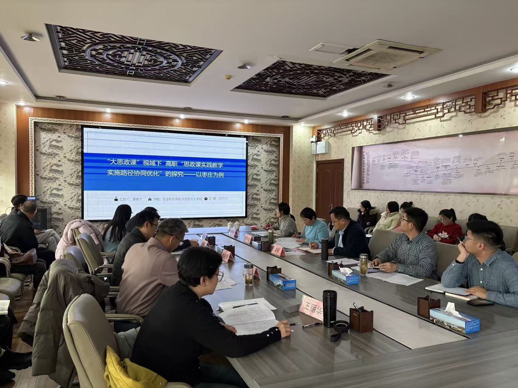 12月23日下午,马克思主义学院在图书信息楼5楼会议室召开思政课教改项目开题论证专题教研会。枣庄市教育科学研究院教师发展研究中心主任杨建伟,枣庄经济学校党委委员、科研中心主任褚福靖,新材料与建筑工程系党支部书记丁晓东,马克思主义学院党支部书记王丽华、马克思主义学院《思想道德与法治》教研室主任高冬琳担任评审专家。校企合作与科研处副处长万冬娥主持会议,马克思主义学院院长姜军及全体专职思政课教师参会。