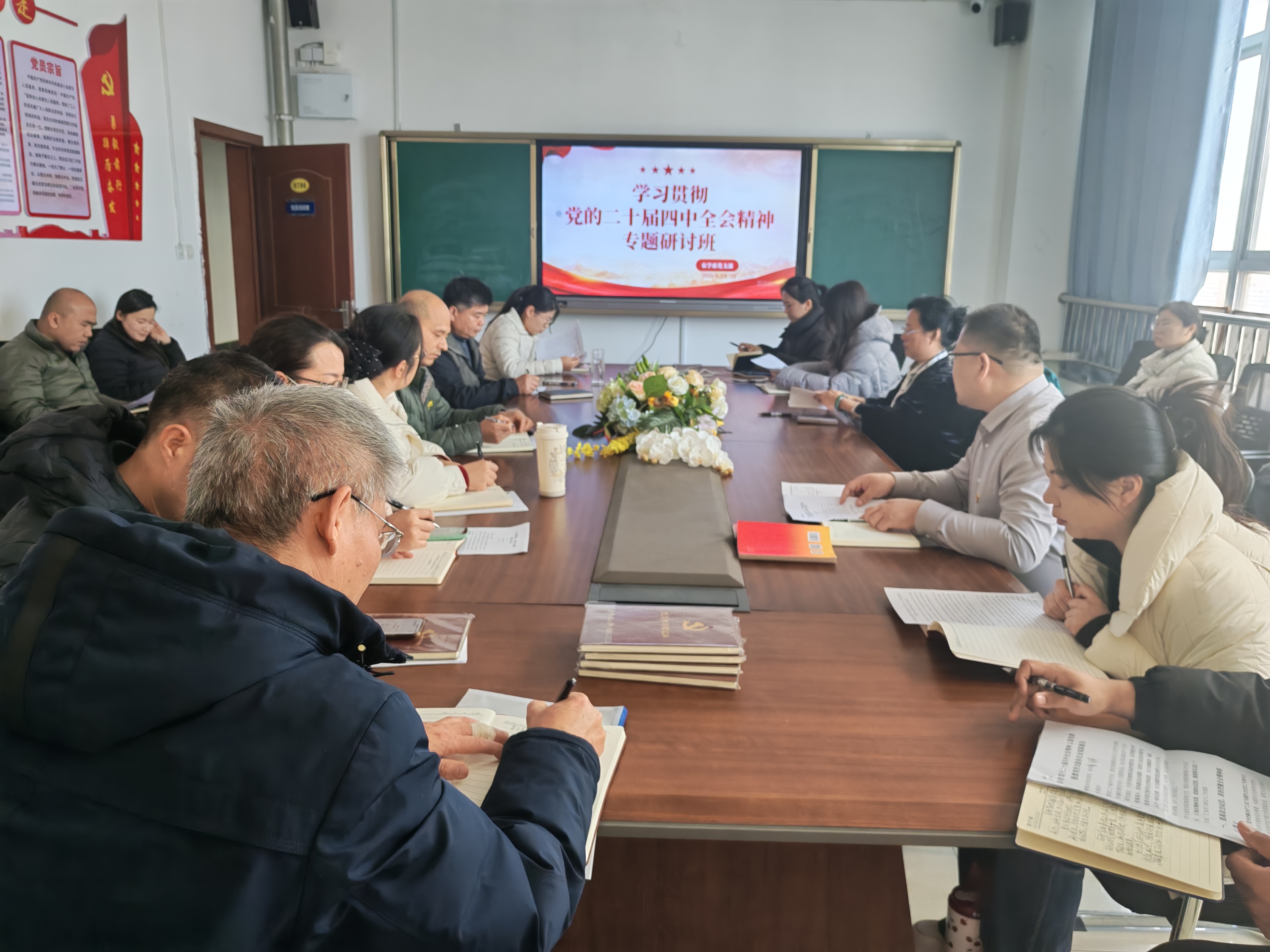 会议伊始,党支部副书记介绍了本次专题研讨班的背景与意义。他指出,党的二十届四中全会为未来五年发展擘画了宏伟蓝图,也为职业教育与农业领域的融合发展指明了方向。全体教职工要提高政治站位,以高度的政治自觉和行动自觉,把全会精神学深悟透、融会贯通,切实将学习成果融入日常教育教学、科研创新和社会服务中。