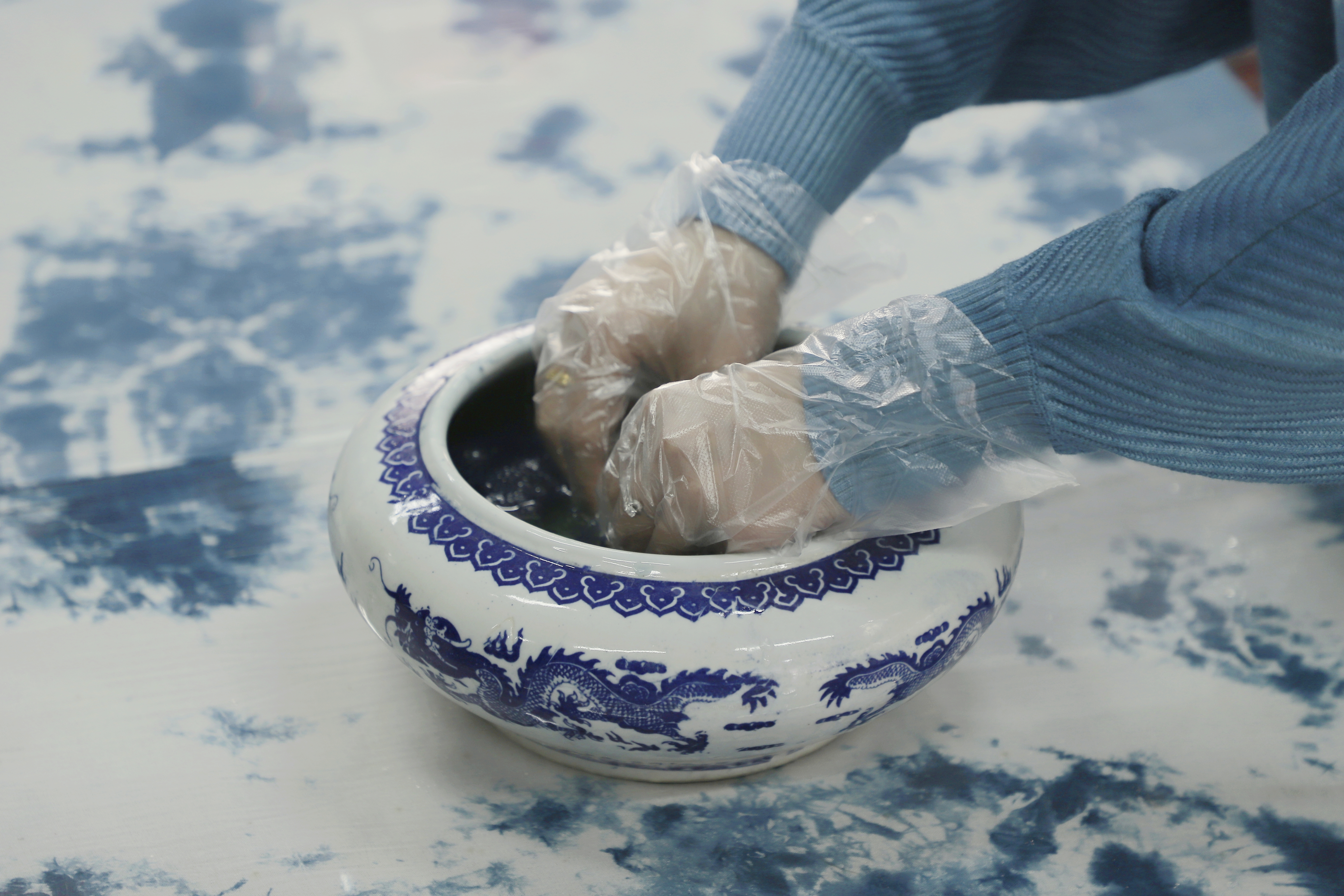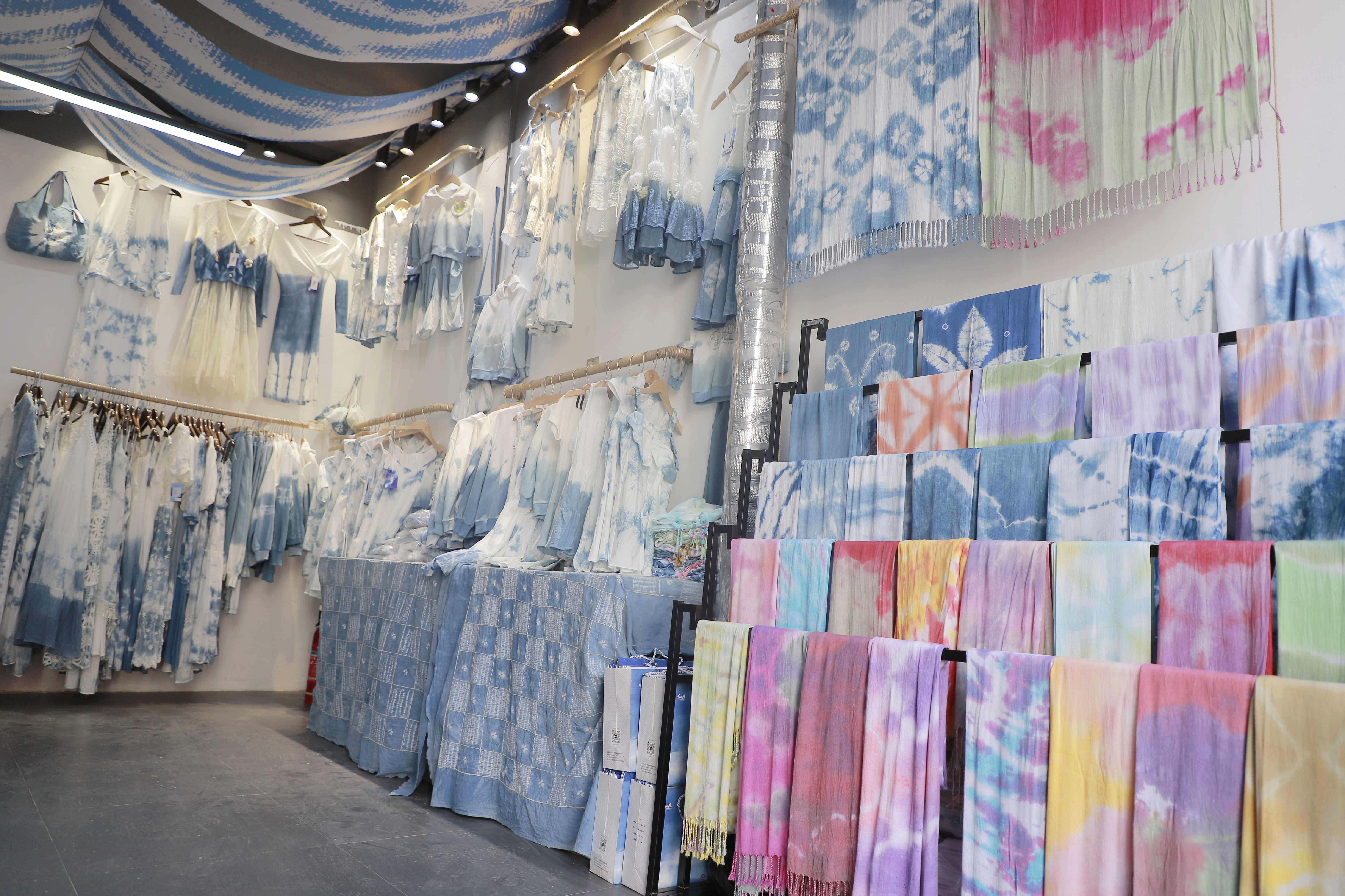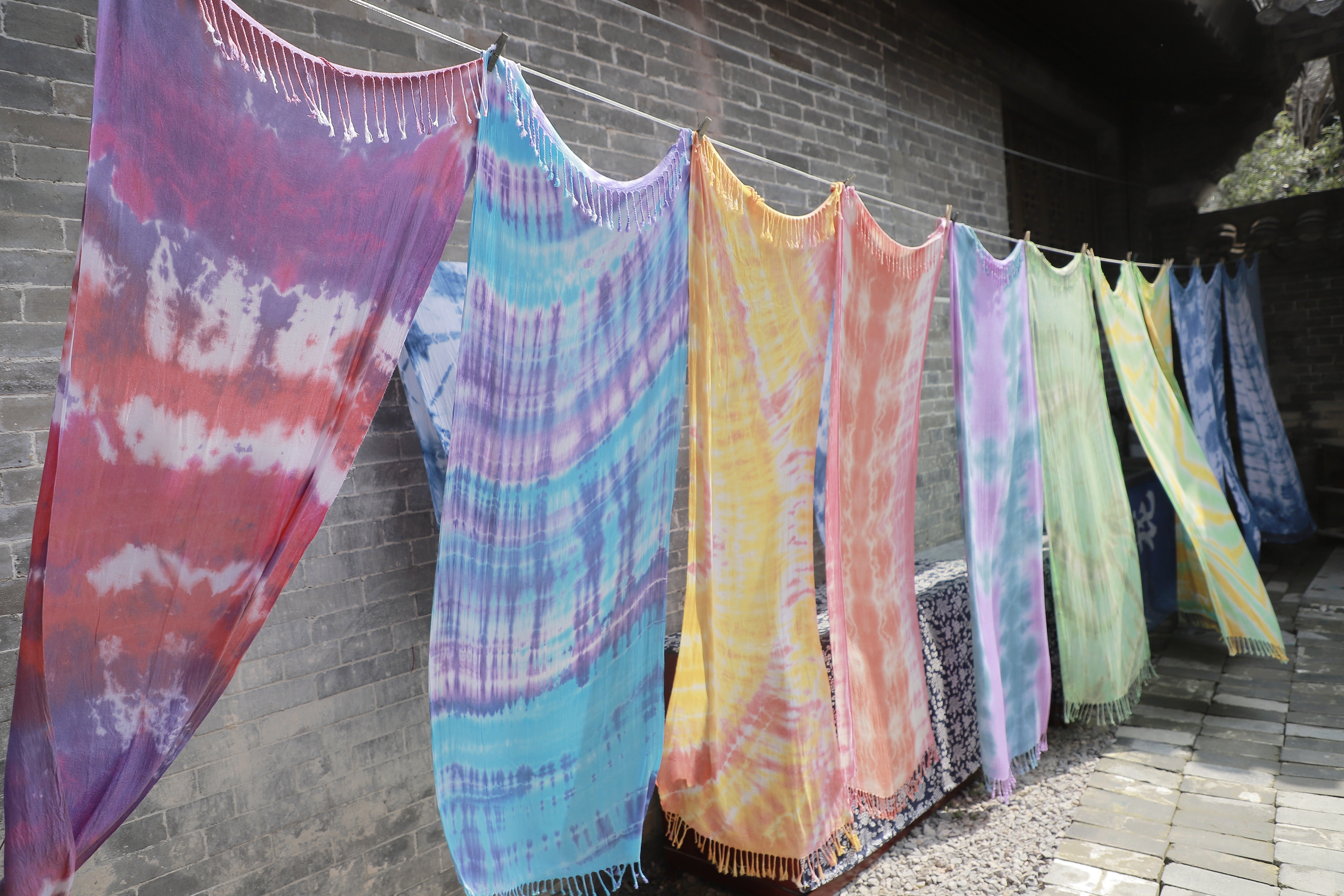志愿者们走进台儿庄扎染非遗工坊,化身非遗宣传员与展演助手,在守艺人指导下深入了解扎染技艺脉络与制作工艺。台儿庄扎染源起黄河流域,有1600多年历史,在枣庄当地传承百年。