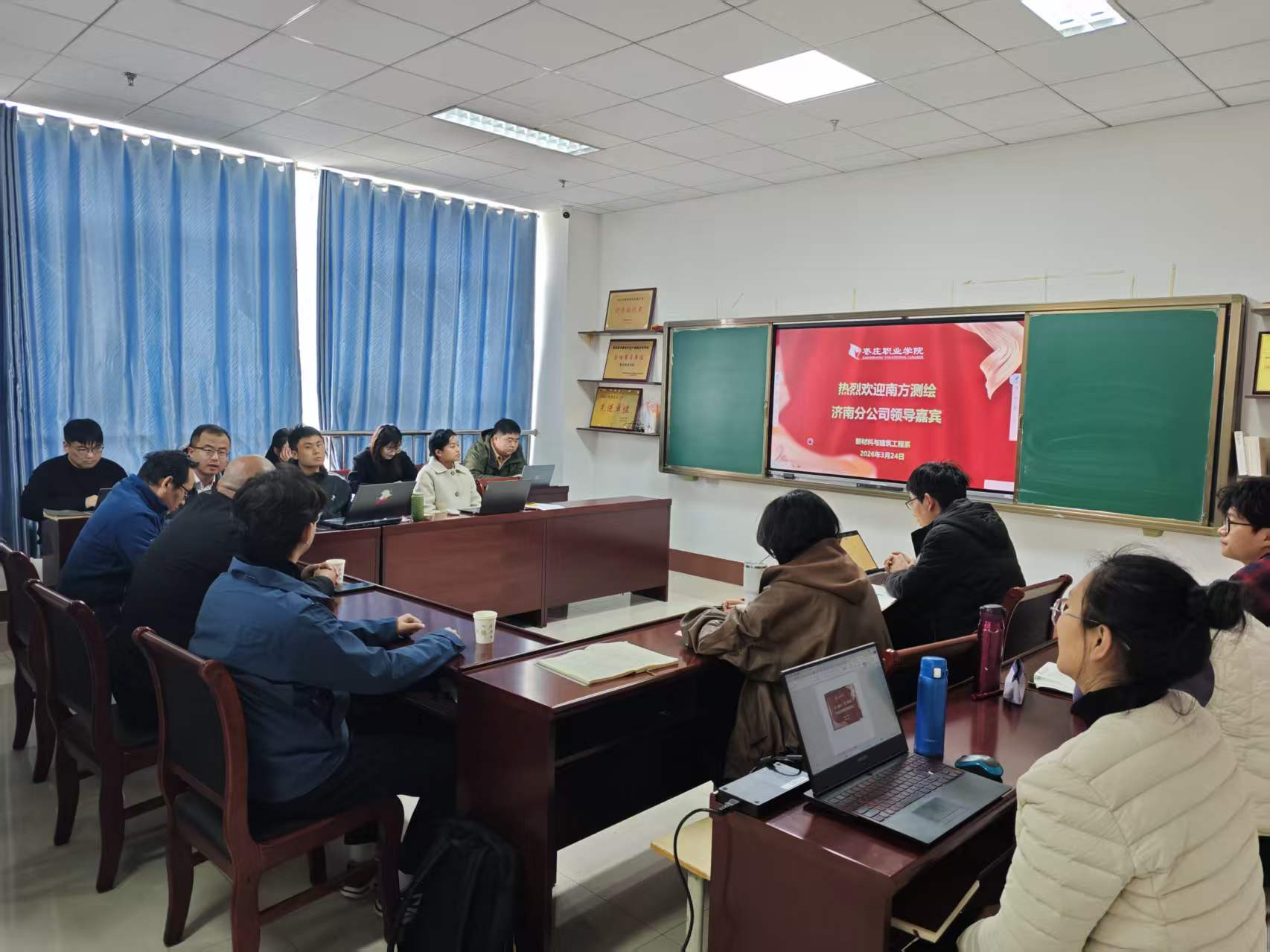 3月24日,新材料与建筑工程系开展第三周教研活动,特邀广州南方测绘科技股份有限公司济南分公司技术工程师到校开展专题培训与实操教学,全系专业教师参加活动。