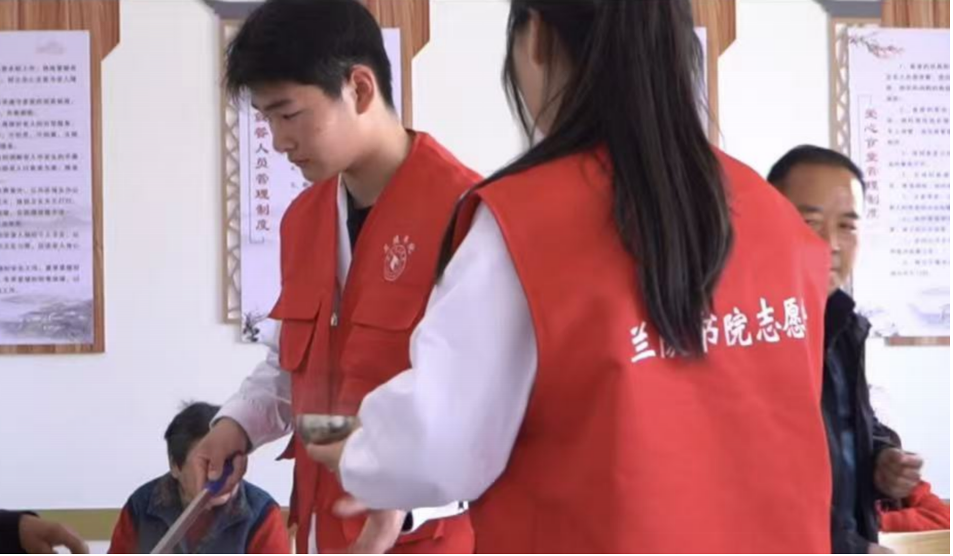 在村爱心食堂,志愿者们主动帮忙打饭、盛汤、端菜,细心照顾高龄、牙口不佳和行动不便的老人,与街道志愿者协同配合,让食堂充满温馨烟火气。