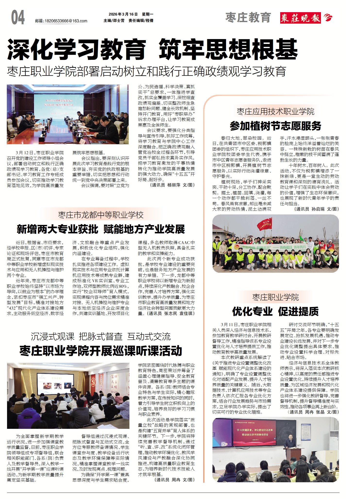 【枣庄晚报】深化学习教育 筑牢思想根基 枣庄职业学院部署启动树立和践行正确政绩观学习教育