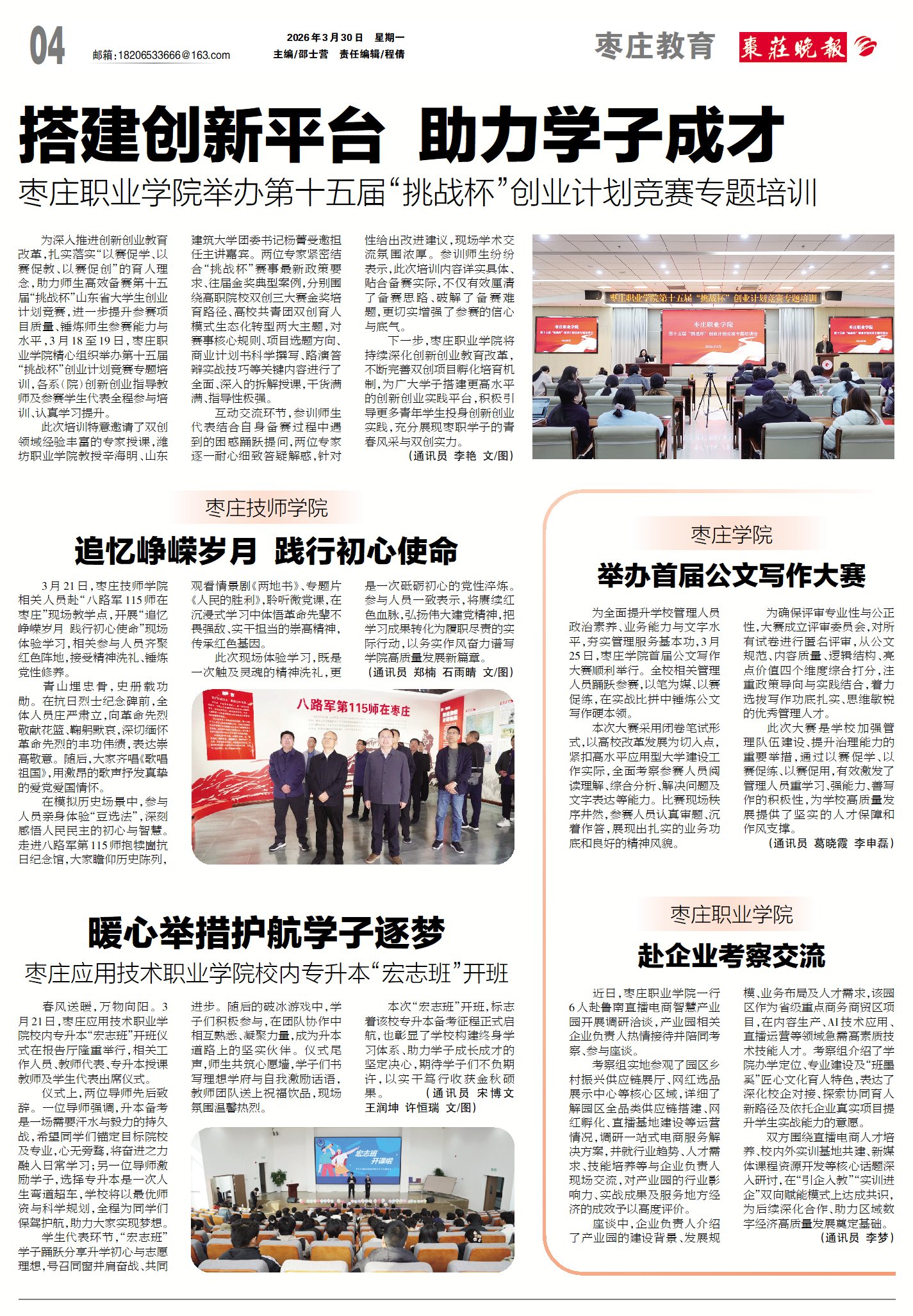 1. 【中国教育在线】枣庄职业学院开展学生...